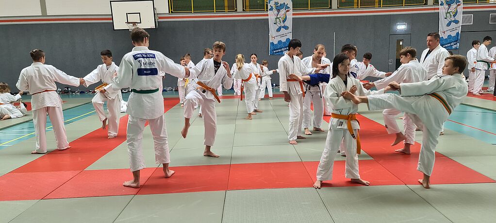 Jugend & Bildung back again – sportliche Jugendbildung der Jugend des Deutschen Ju-Jutsu Verbandes in Hinsbeck unter dem Motto „Hinsbeck Mystery“ Nachdem die Corona-Pandemie der sportlichen Jugendbildung 2020 einen Strich durch die Rechnung machte, konnte die Maßnahme dieses Jahr wieder stattfinden. Zwar mit einer geringeren Teilnehmendenzahl und unter Beachtung von coronabedingten Auflagen, aber die Teilnehmenden und Betreuer/-innen freuten sich riesig, dass das Sommercamp vom 31. Juli bis zum 06. August 2021 im Jugend- und Erlebnisdorf Hinsbeck wieder möglich war. Vorweggenommen – das Konzept mit weniger Teilnehmende, einem abgestimmten Schutz- und Hygiene-Konzept mit den örtlichen Bestimmungen (Sport- und Erlebnisdorf Hinsbeck, Gesundheitsamt Viersen) und doppelter Testung, ging auf. Auch das diesjährige Motto „Agenten und Spione – Hinsbeck Mystery“ war auf die Pandemie-Situation ausgerichtet: Kontakte über „tote Briefkästen“, kleine Spezialeinheiten in einzelnen Häusern, Training und Aktionen in kleineren Gruppen u. v. m. wurde geplant und umgesetzt, so dass die 134 Kinder und Jugendlichen sowie die Betreuer/-innen gemeinsam eine Woche Spaß und Freude mit Ju-Jutsu / Jiu-Jutsu erleben konnten. Das diesjährige Motto „Hinsbeck Mystery“ gab den Teilnehmenden bereits im Vorfeld einige Rätsel auf, die es zu entschlüsseln galt. Während des Camps durchliefen die Teilnehmenden eine „Agenten/-innenausbildung“ mit unterschiedlichen Übungen. Alle erfahrenen Sportler/-innen und Ju-Jutsukas erkennen sofort, dass mit der „Grundausbildung“ im Rahmen des täglichen Ju-Jutsu-Trainings auch das JJ-Sportabzeichen erworben wurde und die unterschiedlichen „Zusatzausbildungen“ von den Kinder und Jugendlichen je nach Interessen mit viel Spaß und Freude in den zusätzlichen „Wahlprogrammen“ absolviert werden konnten: Die „Agenten“ Steve und Bernd hatten als besonderes Highlight eine Trainingseinheit für angehende Spezialagent/-innen mit echten Handschellen und wieder zu öffnenden Kabelbindern vorbereitet, die mit Festlegetechniken aus dem Prüfungsprogramm vertieft wurden. Darüber hinaus wurden während der Maßnahme unterschiedliche wichtige Skills wie Gewaltprävention, Selbstbehauptung und Selbstverteidigung – alles Inhalte des Konzeptes „Nicht-mit-mir! – Schütz dich vor Gewalt!“ – vermittelt sowie Techniken aus dem Ju-Jutsu Technikprogramm. Ein ebenso wichtiges Thema ist die „Prävention sexualisierter Gewalt“, die wir immer den Teilnehmenden altersgerecht vermitteln. Diese Einheiten sind fester Bestandteil des Sommercamps und werden gesondert für Jungen und Mädchen nach Altersstufen getrennt angeboten. Jugendbildung vermittelt nicht nur Werte, die unserem Sport nahe sind – wir greifen auch aktuelle Themen. Unsere theoretischen Einheiten, die in Form von interaktiven Referaten vermittelt wurden, befassten sich mit den Themen: „Olympische Werte – Werte im Ju-Jutsu – Werte in der Gesellschaft“, „Nachhaltigkeit im Alltag“, „Diskriminierung & Toleranz“ und „Walderlebnis“ Natur entdecken - Umgang mit der Natur. Passend zu dem Motto gab es auch in diesem Jahr natürlich auch wieder eine Campgeschichte: JuLe wurde am ersten Abend leider bei der Begrüßungsparty von dem bösen Phantom und seinen Spionen entführt. Der untröstliche JuJu bekam jedoch eine verschlüsselte Nachricht, die JuLe an ihren Wachen vorbei hinausschmuggeln konnte, durch die der erste Hinweis auf den Aufenthaltsort von JuLe durch JuJu mit der Unterstützung der Kinder entschlüsselt werden konnte. Nachdem noch verschiedene Abenteuer und Hindernisse überwunden werden mussten, konnten die Kinder schließlich nach einer großen Wasserschlacht die „gefangene Jule“ befreien und so gab es schließlich ein großes Happy End für JuJu und JuLe, die das glücklich vereint auf der Abschlussparty mit allen Kinder und Jugendlichen feierten. Auch wenn das so verträumt und harmlos wirkende Hinsbeck niemals alle Geheimnisse der Agenten/-innenausbildung preisgeben wird, haben die Spione des Phantoms aber bereits verschiedene Informationen veröffentlicht, die wir daher auch ganz offiziell mit Euch teilen können: Dies waren beispielsweise unsere Erlebnispädagogischen Einheiten, die unter anderem unseren Agentenanwärtern/-innen zum Teil heldenhaftem Mut abforderten, entweder im Kletterwald oder in der Flip-Hop-Bewegungslandschaft mit Trampolinen, Rutschen, Boulderwand, Hangelstation, Kletterstangen und vielem mehr. Eine Nachtwanderung mit Spaß und Erschrecken rundete den erlebnispädagogischen Teil ab. Unterstützt wurden die Agenten dieses Jahr von einer motivierten Gruppe aus Agentenanwärter/-in, die im Sommercamp ihren praktischen Teil der Freizeitleiter/-innenausbildung absolvierten. Vielen lieben Dank an euch! Das Abschlusstraining hatte in diesem Jahr dann auch noch ein einen besonderen Gänsehautmoment - es gab eine Verleihung für großes ehrenamtliches Engagement für ihre Jugendarbeit auf Vereins-, Landes- und Bundesebene! In der Halle wurde es ganz still, denn niemand hatte dieses Geheimnis zuvor gelüftet – und so hatten nicht nur die Geehrten Tränen in den Augen… Der 2. Dan Ju-Jutsu wurde an Marcel Höninger (Baden) verliehen. Der 1. Kyu Ju-Jutsu wurde an Anna Kricsanowits (Niedersachsen) und der 2. Kyu Ju-Jutsu an Karolin Moscherosch, Bernd Weiss und Dorothee Mattheis (Baden). Die Verleihungen nahm Michael Korn Vizepräsident Jugend DJJV vor. Die Verleihungen erfolgten im Auftrag der jeweiligen Landesverbände. Herzlichen Glückwunsch und vielen Dank! Wie in jedem Sommercamp schien auch in diesem Jahr die Zeit doppelt so schnell wie normal zu vergehen, schon war der Abschlussabend da: neben Tanz, Marshmallow-Sprech-Challenge fand das „Agenten/-innen-Herzblatt“ statt. Der Verhaltenskodex nicht nur für Agent/-innen und Anwärter/-innen lautet: „Was im Sommercamp passiert, bleibt im Sommercamp.“ So kann ich Euch nur sagen, da
