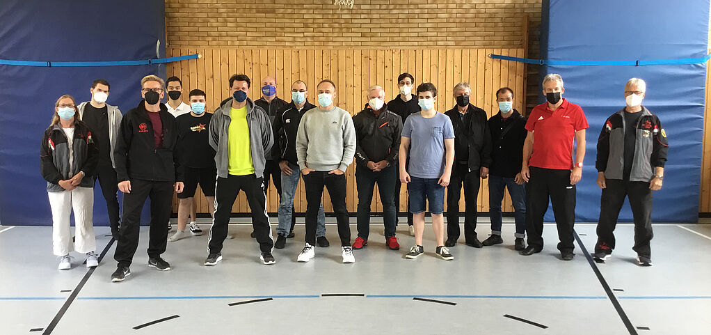 Entsprechend der Situation war der Lehrgang etwas anders aufgebaut. Anstatt der praktischen Einheit zum Thema Nothilfe wurde eine neue Thematik eingefügt. Neben den Voraussetzungen und Befugnissen des „Kleinen Waffenscheines“ wurde die Thematik der erlaubten Waffen und Gegenstände innerhalb der Selbstverteidigung ausführlich erläutert und dargestellt. Nutzen und Gefahren beim Einsatz wurden den Teilnehmern gegenübergestellt. Die Notwehr wurde anhand einer Power-Point Präsentation den Teilnehmern nahegebracht und die gesetzlichen Fakten in all ihren Facetten erläutert. Im Bereich der Nothilfe stand die Betrachtung der gesamten Situation, vom Beginn bis zur durchdachten Umsetzung der zu leistenden Nothilfe, im Vordergrund. Hierbei wurde den Teilnehmern dargestellt wie, viele gedankliche Abläufe in Sekundenschnelle durchdacht und abgewogen werden müssen um letztendlich erfolgreich Nothilfe leisten zu können. Im Bereich des Waffenrechtes wurden die Teilnehmer auf den aktuellen Stand gebracht. Immer wieder zeigte sich hierbei bei den Teilnehmern eine große Unsicherheit bei erlaubten und nicht erlaubten Waffen und Gegenstände. Aus dem Themenbereich der „Verantwortung des Vereinstrainers gegenüber seiner Schüler“ beendete der Lehrreferent die Fortbildung. Hier legte er diesmal den Fokus auf den Umgang mit Trainingswaffen und die Wirkungsweisen von SV-Techniken. NWJJV