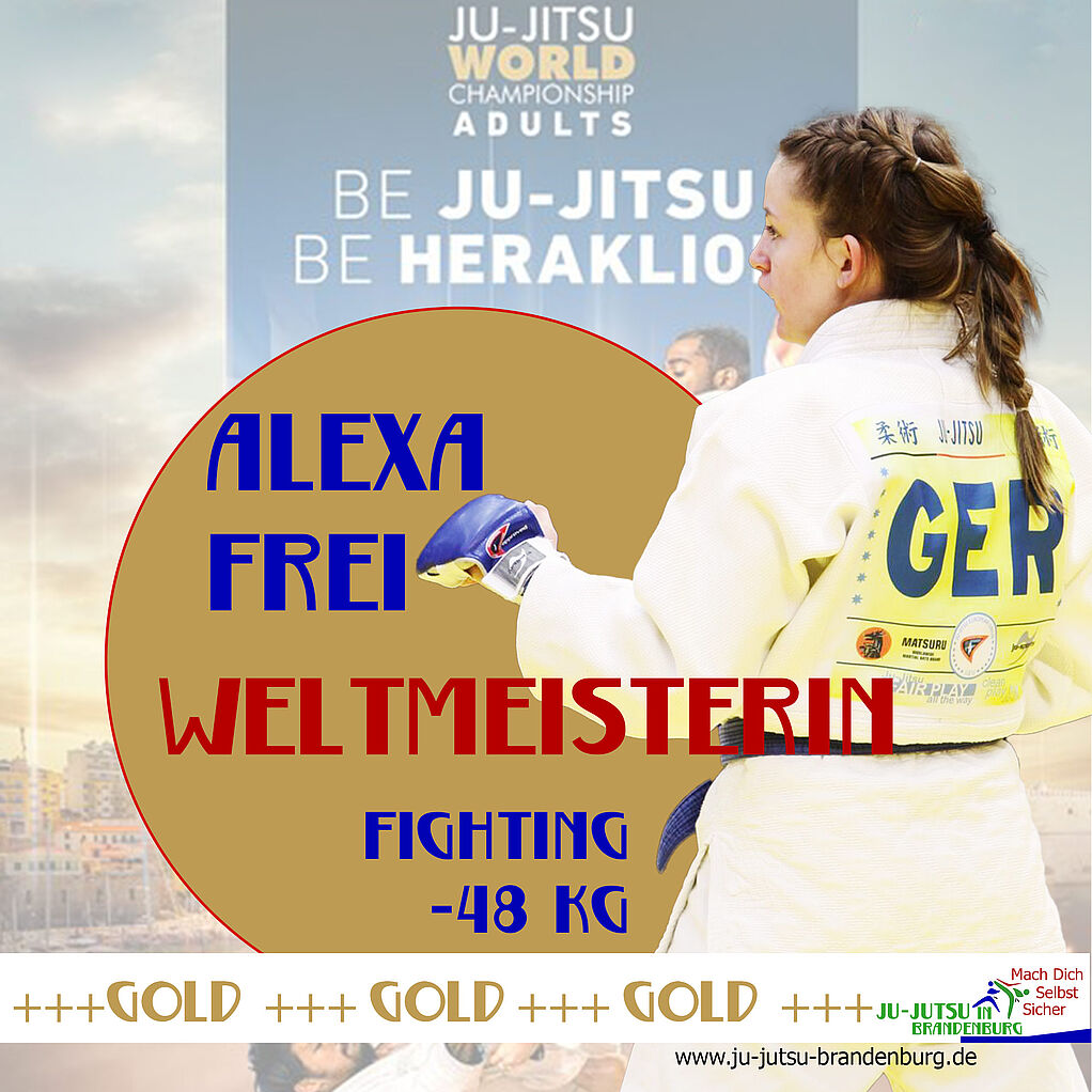 Bei der WM in Heraklion hat sich Alexa Frei vom 1. Ju-Jutsu Verein Bernau e.V. gerade die Goldmedaille erkämpft!