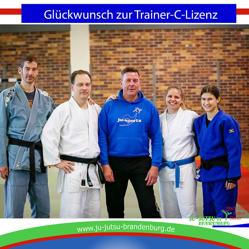 Sie haben trainiert, gelernt - und jetzt haben sie ihr Wissen unter Beweis gestellt, gestern in der Theorie, heute bei der Lehrprobe. Und was sollen wir sagen: Sie haben Heiko Schwarz, Referent Bildung beim BJJV, überzeugt - und bestanden! Wir begrüßen als neue Trainer-C Philip Breustedt (Yawara Berlin), Bernd Buchholz (SV Schorfheide), Jenny Hoffmann (SV Wustermark) sowie Pia Suter (PSV Frankfurt/Oder, v.l.). Herzlichen Glückwunsch - und natürlich freuen wir uns auf die ersten Stunden von euch.