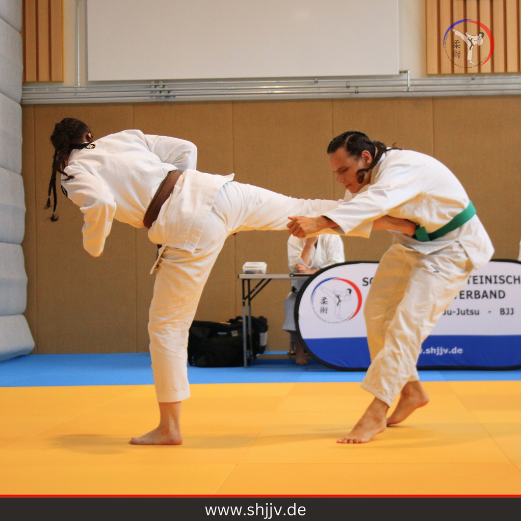 Am Samstag fand in Norderstedt die erste Landesprüfung des Jahres des Schleswig-Holsteinischen Ju-Jutsu-Verbandes e.V. statt. Diese besondere Veranstaltung lief parallel auf teilweise drei Matten ab und stellte eine Premiere dar, da erstmals nach dem aktualisierten Ju-Jutsu-Programm geprüft wurde, während gleichzeitig auch das alte Programm noch angewendet wurde.