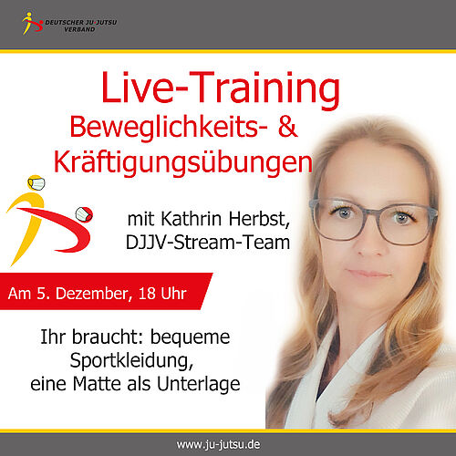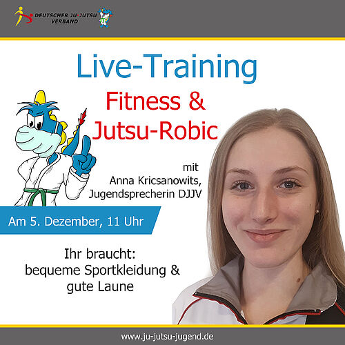 7. Live - Training "Fitness & Jutsu-Robic" mit DJJV Jugendsprecherin Anna Kricsanowits! 05.12.2020 - 11:00 Uhr Ihr benötigt bequeme Sportkleidung & gute Laune. [HIER GEHTS ZUM TRAINING - via...[mehr]