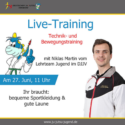 5. Live - Training "Technik & Bewegungstraining für das DJJV-Jugendsportabzeichen" mit Niklas Martin! 27.06.2020 - 11:00 Uhr Ihr benötigt Sportkleidung. [HIER GEHTS ZUM TRAINING - via FACEBOOK][HIER GEHTS...[mehr]