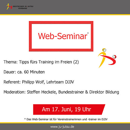 Webinar - "Tipps fürs Training im Freien (2)" mit Philipp Wolf & Steffen Heckele 24.06.2020 - 19:00 Uhr [HIER GEHTS ZUM TRAINING - via FACEBOOK][HIER GEHTS ZUM TRAINING - via ZOOM WEB-SEMINAR] -...[mehr]