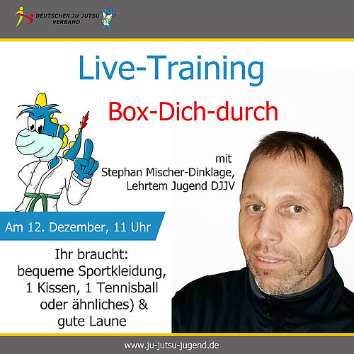 8. Live - Training "Box dich durch!" mit Stephan Mischer-Dinklage aus dem Lehrteam Jugend 12.12.2020 - 11:00 Uhr Ihr benötigt bequeme Sportkleidung, 1 Kissen, 1 Tennisball o.ä. & gute Laune. [HIER GEHTS ZUM...[mehr]